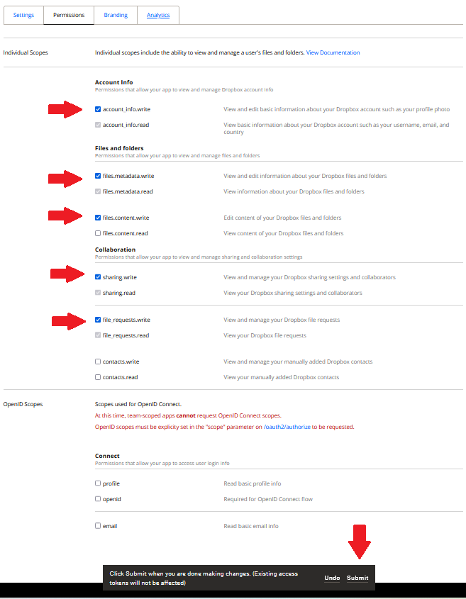 در مراحل بعد با واردکردن اطلاعات در فرمهای A تا D که مشابه تصاویر زیر باز میشود، میتوانید سرویس دراپ باکس خود را فعال کنید.