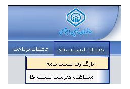 - در مرحله بعد، از منوی بالای صفحه روی عملیات ارسال لیست کلیک کرده و سپس بارگذاری لیست بیمه را انتخاب میکنیم.