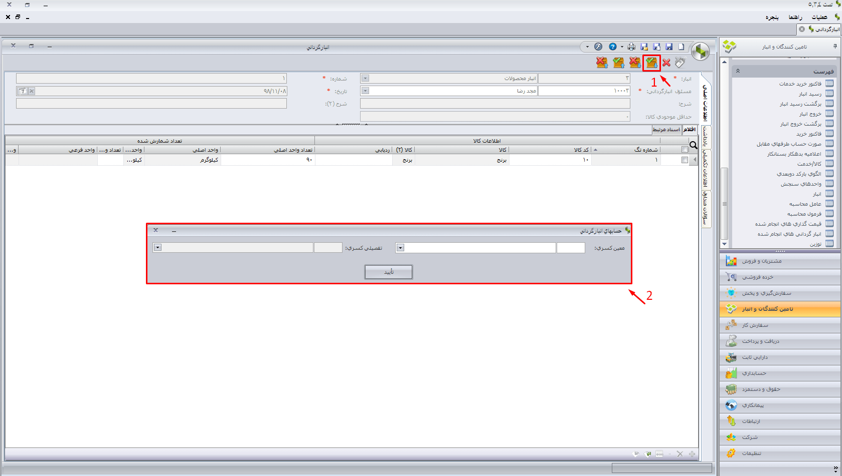 حال فرم انبارگردانی را ذخیره کرده اقدام به تأیید شمارش و صدور سند کسر و اضافه خود نمایید.